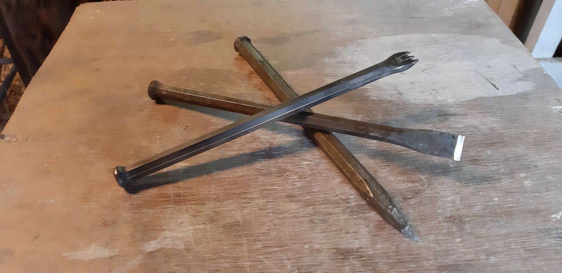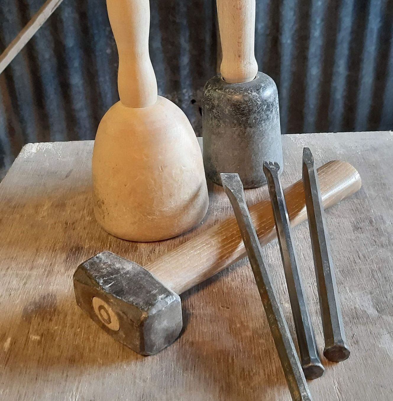 Je gebruikt verschillende type beitels en hamers/kloppers om overtollig steen weg te hakken.